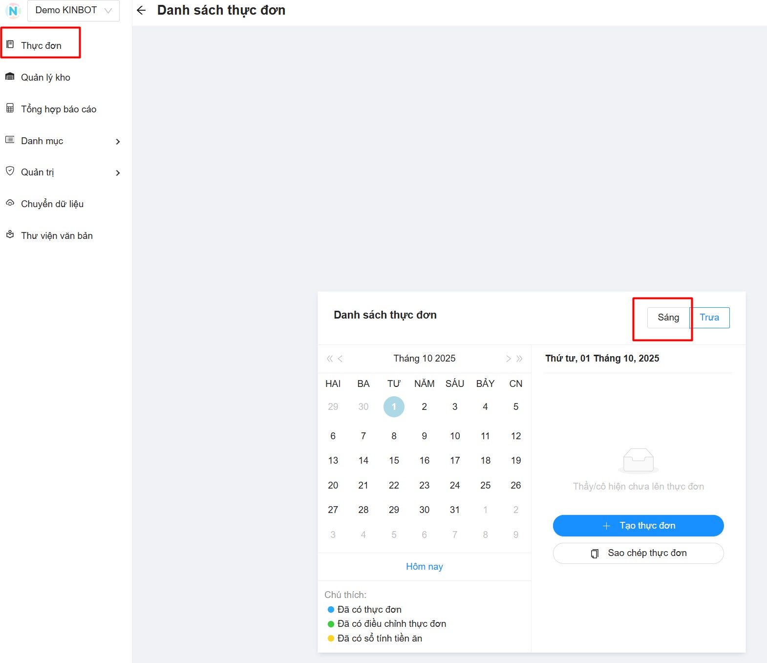 Nếu Thầy/Cô muốn thực hiện bộ sổ riêng cho thực đơn sáng thì vẫn có thể làm các bước tương tự như thực đơn trưa và xế.