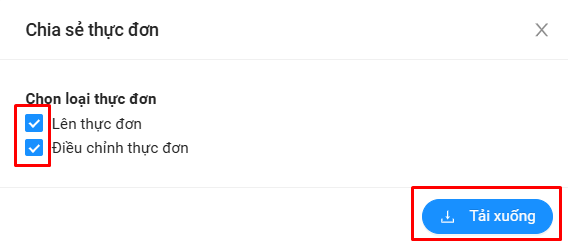 Bước 2: Chọn loại thực đơn cô muốn chia sẻ và bấm nút Tải xuống