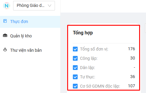 - Sau khi đăng nhập vào phần mềm thầy/cô có thể xem tổng quan về số lượng trường trong Phòng như hình bên dưới:
