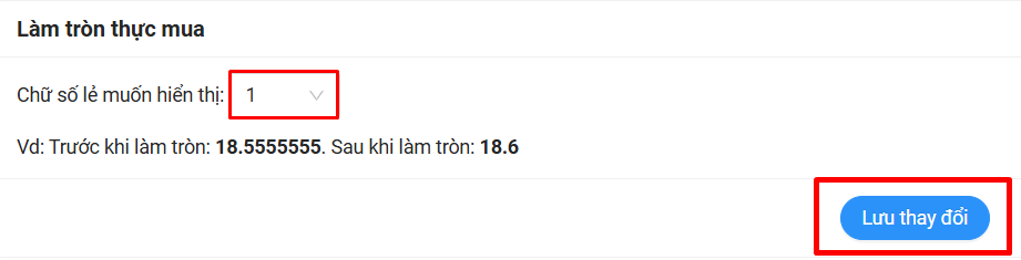 Thầy/cô có thể chọn số lượng chữ số sau dấu phân tách thập phân khi sử dụng tính năng làm tròn thực mua. VD hình dưới:
