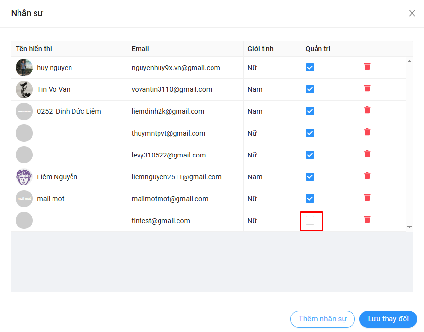 Bước 3: Bấm Lưu thay đổi và OK để hoàn tất việc thêm nhân sự mới