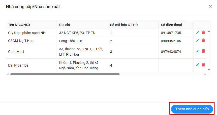 - Sửa thông tin Nhà cung cấp/Nhà sản xuất