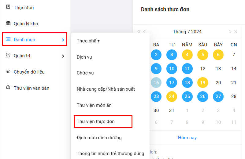 Thư viện thực đơn là nơi lưu trữ những thực đơn mẫu của trường mà khi lên thực đơn thầy/cô đã lưu vào.